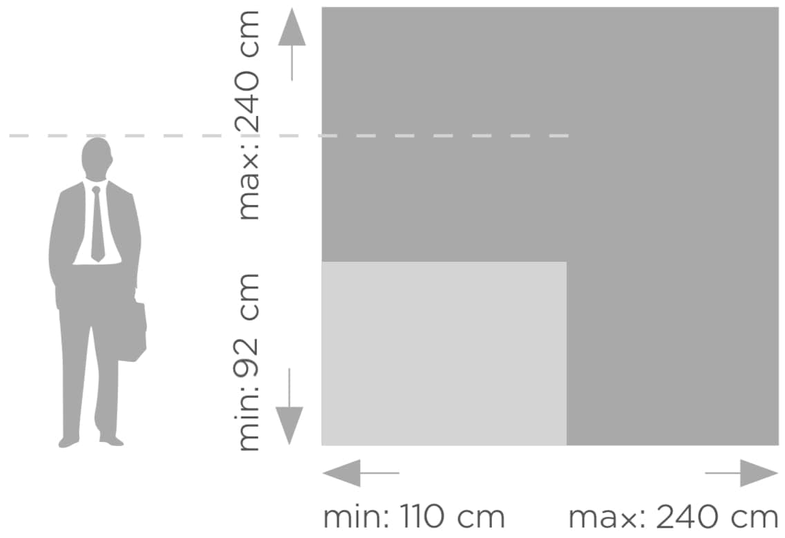 Versum je stěna s nastavitelnými rozměry. Maximální a minimální rozměry konstrukce jsou uvedeny v manuálu. Pro správnou instalaci grafiky je nutné přidat 10 cm navíc v horní a dolní části potisku, které slouží k vytvoření tunýlku. Do těchto tunýlků se poté zasunou horní a dolní nosník konstrukce.