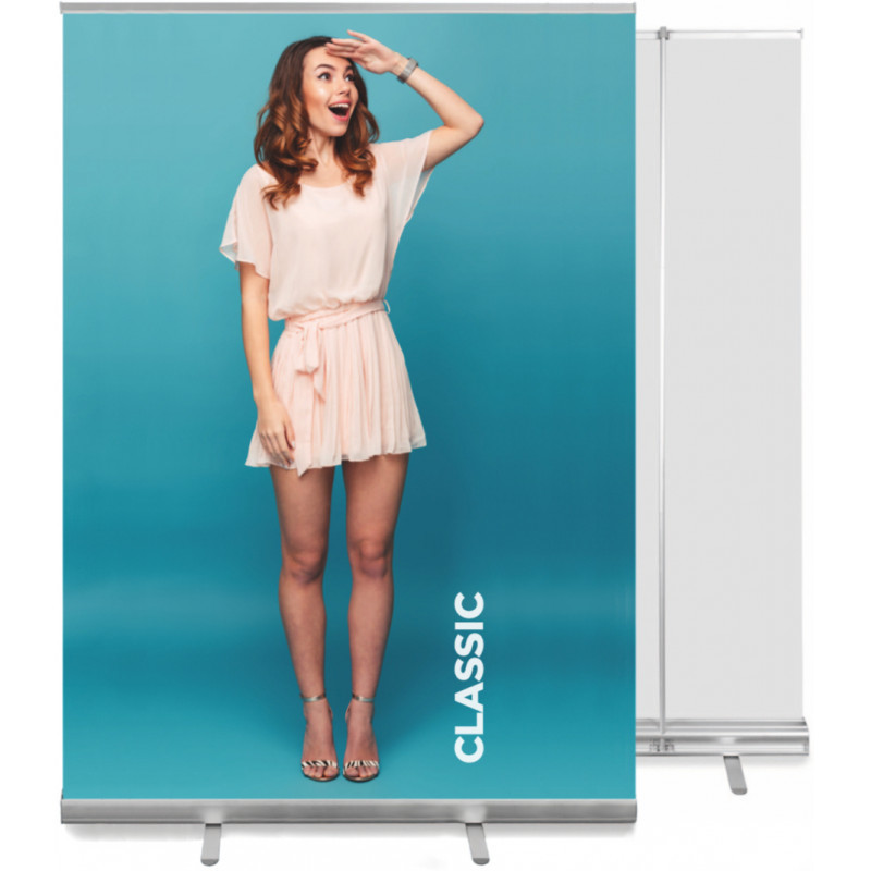 Roll Up Classic is a more compact version of the popular Standard model. The anodized aluminum cassette guarantees high durability and long lifespan. Rear plate prevents unwanted rotation of the cassette, while the pole stabilizer ensures straight and stable presentation of the graphic. Plastic foot caps additionally protect the carrying bag from damage during storage.