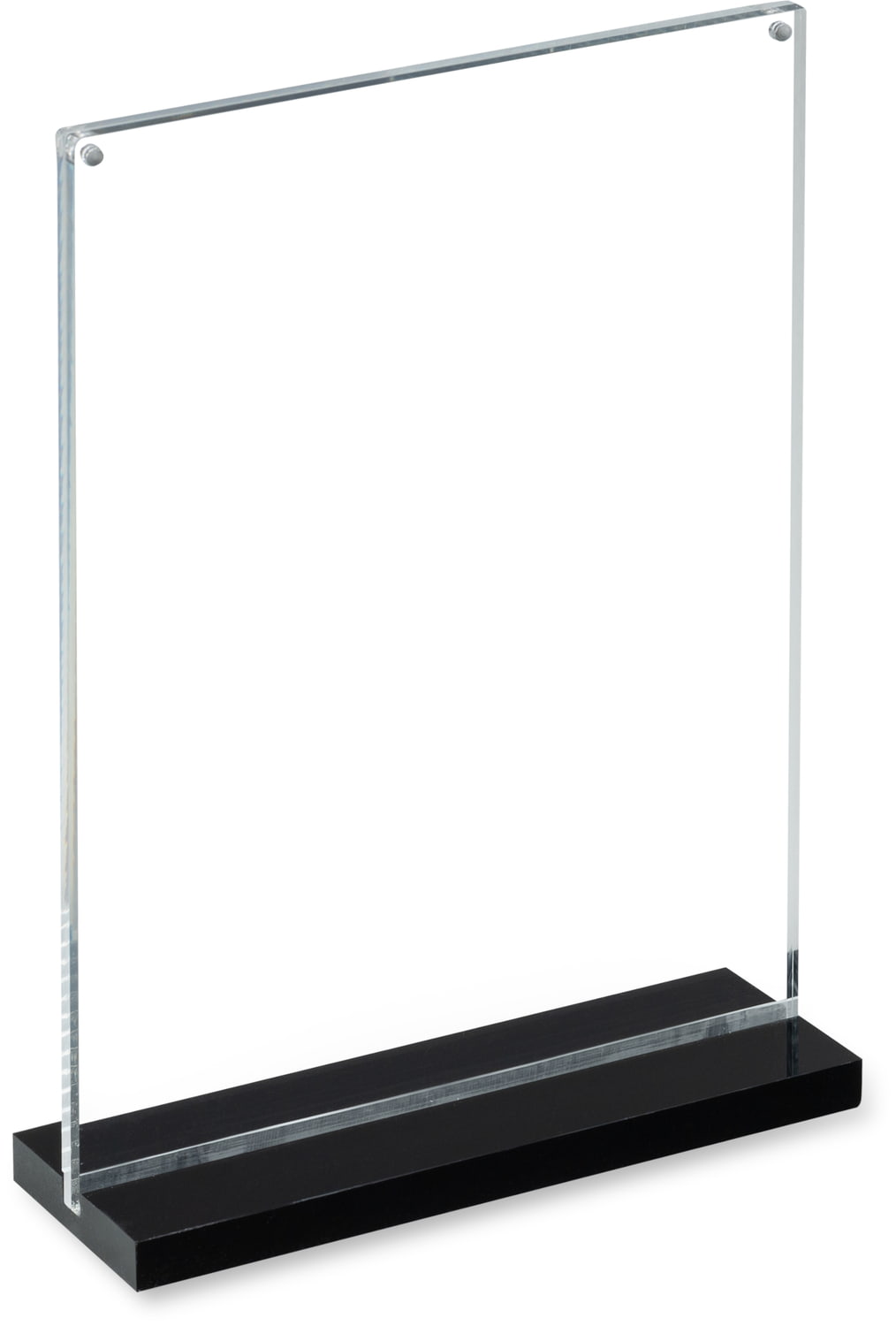 Elegant double-sided acrylic stand. Stylish appearance and excellent stability ensured by a wide base. Graphics can be replaced in seconds by inserting them between two magnetic panels. Ideal for use in public spaces such as restaurants, banks, or hotels.