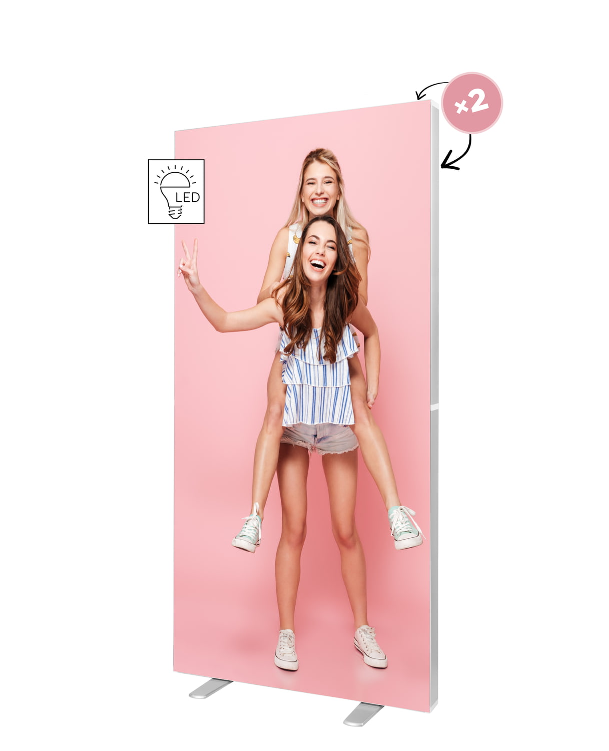 Přenosný, podsvícený, oboustranný systém. Desítky výkonných LED diod zaručují jedinečný a poutavý efekt, který oživí vaší grafiku. Vysokou kvalitu, snadnou montáž i dlouhou životnost zajišťuje pevný hliníkový rám. Textilní tisk napnutý pomocí silikonové pásky zajišťuje dokonale hladký a elegantní vzhled. Systém je dodáván v robustní kartónovém boxu, který usnadňuje skladování i přepravu.