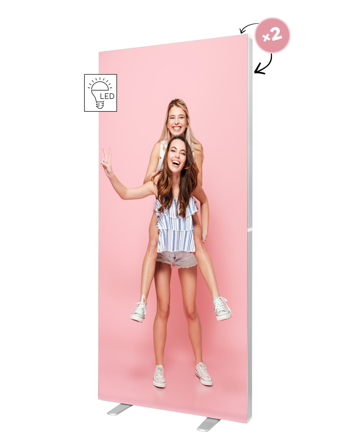 Přenosný, podsvícený, oboustranný systém. Desítky výkonných LED diod zaručují jedinečný a poutavý efekt, který oživí vaší grafiku. Vysokou kvalitu, snadnou montáž i dlouhou životnost zajišťuje pevný hliníkový rám. Textilní tisk napnutý pomocí silikonové pásky zajišťuje dokonale hladký a elegantní vzhled. Systém je dodáván v robustní kartónovém boxu, který usnadňuje skladování i přepravu.