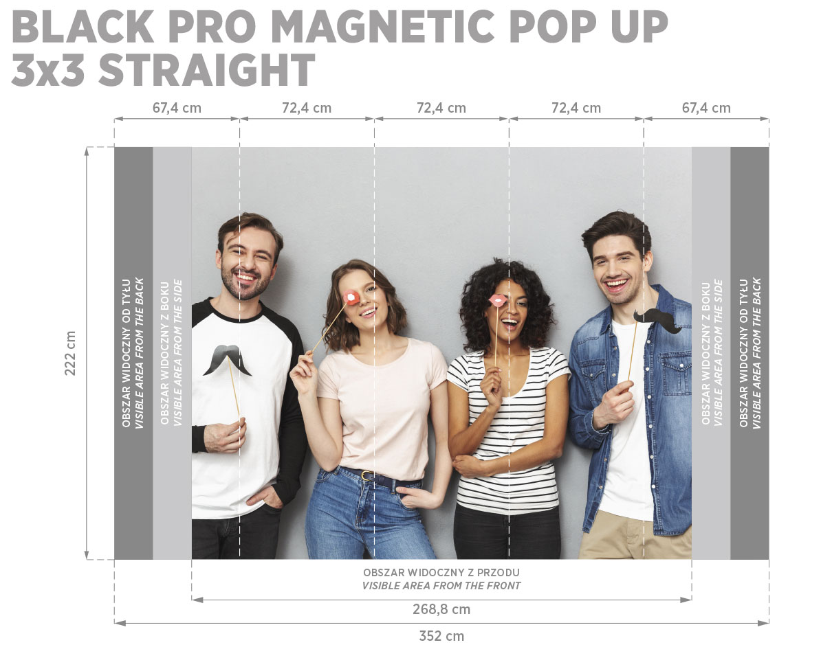 Parametry produktu Magnetická Pop Up stěna PRO BLACK rovná 3x3 v boxu na kolečkách