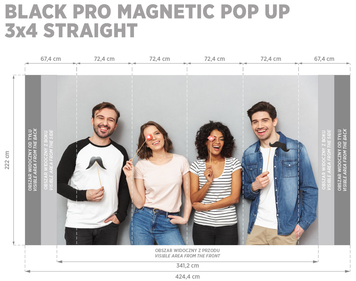 Parametry produktu Magnetická Pop Up stěna PRO BLACK rovná 3x4 v boxu na kolečkách