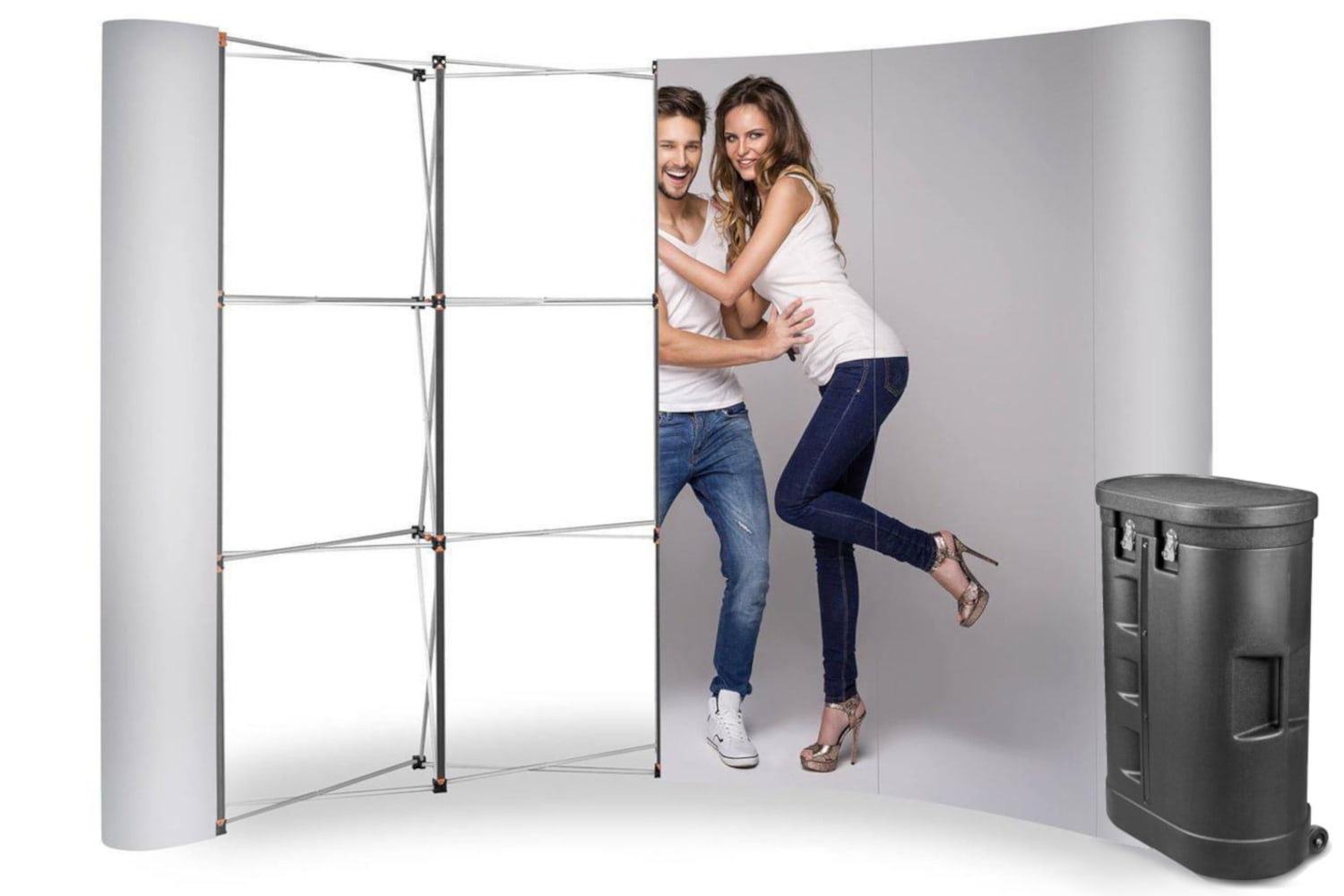 Reklamní stěna vybavena skládací hliníkovou konstrukcí, kterou lze rozložit jediným pohybem. Díky Pop Up mechanismu je instalace rychlá a intuitivní. Magnetický systém neviditelného uchycení PVC panelů zajišťuje čistý a elegantní vzhled bez rušivých prvků na pohledové straně. Konstrukce umožňuje snadnou výměnu jednotlivých panelů, což poskytuje vysokou flexibilitu při změnách grafiky podle konkrétního zaměření prezentace. Kompaktní rozměry ve složeném stavu usnadňují přepravu i skladování.