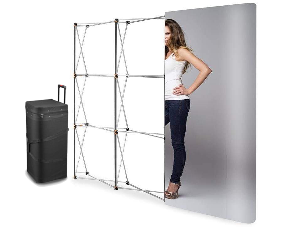 Reklamní stěna vybavena skládací hliníkovou konstrukcí, kterou lze rozložit jediným pohybem. Díky Pop Up mechanismu je instalace rychlá a intuitivní. Magnetický systém neviditelného uchycení PVC panelů zajišťuje čistý a elegantní vzhled bez rušivých prvků na pohledové straně. Konstrukce umožňuje snadnou výměnu jednotlivých panelů, což poskytuje vysokou flexibilitu při změnách grafiky podle konkrétního zaměření prezentace. Kompaktní rozměry ve složeném stavu usnadňují přepravu i skladování.