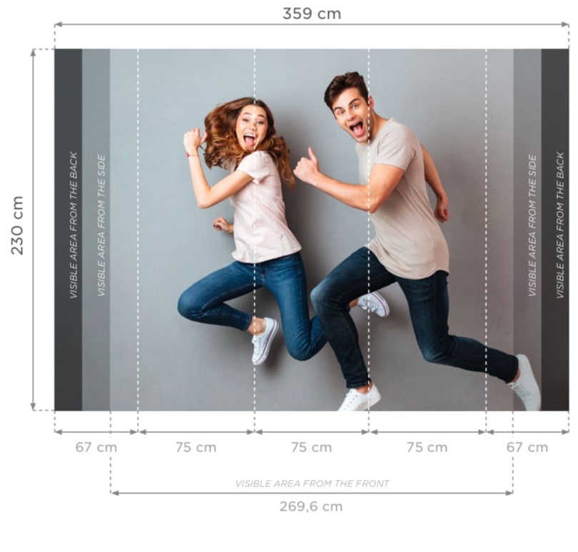 Sada obsahuje kompletní sadu PVC panelů pro lepení grafiky a zavěšení na stěnu. Všechny panely mají stejné rozměry: 78 cm x 235 cm. Pro snadné lepení grafiky je rozměr dodávaných panelů větší než rozměr viditelné plochy. Přebytečné panely je nutné odříznout.