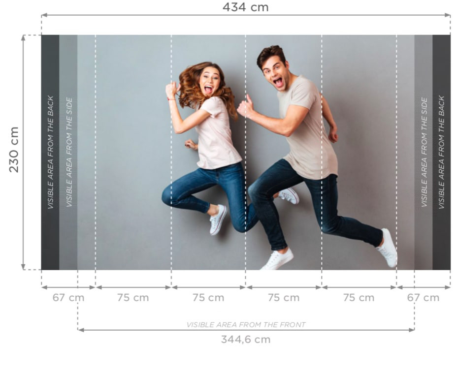 Sada obsahuje kompletní sadu PVC panelů pro lepení grafiky a zavěšení na stěnu. Všechny panely mají stejné rozměry: 78 cm x 235 cm. Pro snadné lepení grafiky je rozměr dodávaných panelů větší než rozměr viditelné plochy. Přebytečné panely je nutné odříznout.