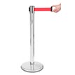 Robustní nerezový zahrazovací sloupek v chromovém provedení s integrovaným navíjecím mechanismem, určený pro náročné provozy. Díky zvýšené hmotnosti nabízí výbornou stabilitu i při plném vysunutí pásu o délce 225 cm. Navíjecí hlava je integrována do těla sloupku a její výměna je rychlá a nenáročná. V případě potřeby ji lze snadno nahradit hlavou s páskem jiné barvy – ideální řešení, pokud chcete změnit barevné vyznačení nebo obnovit vzhled celého systému. Pás je vyroben ze stejného materiálu, jaký se používá pro bezpečnostní pásy v automobilovém průmyslu – je mimořádně pevný, odolný proti opotřebení a netřepí se.