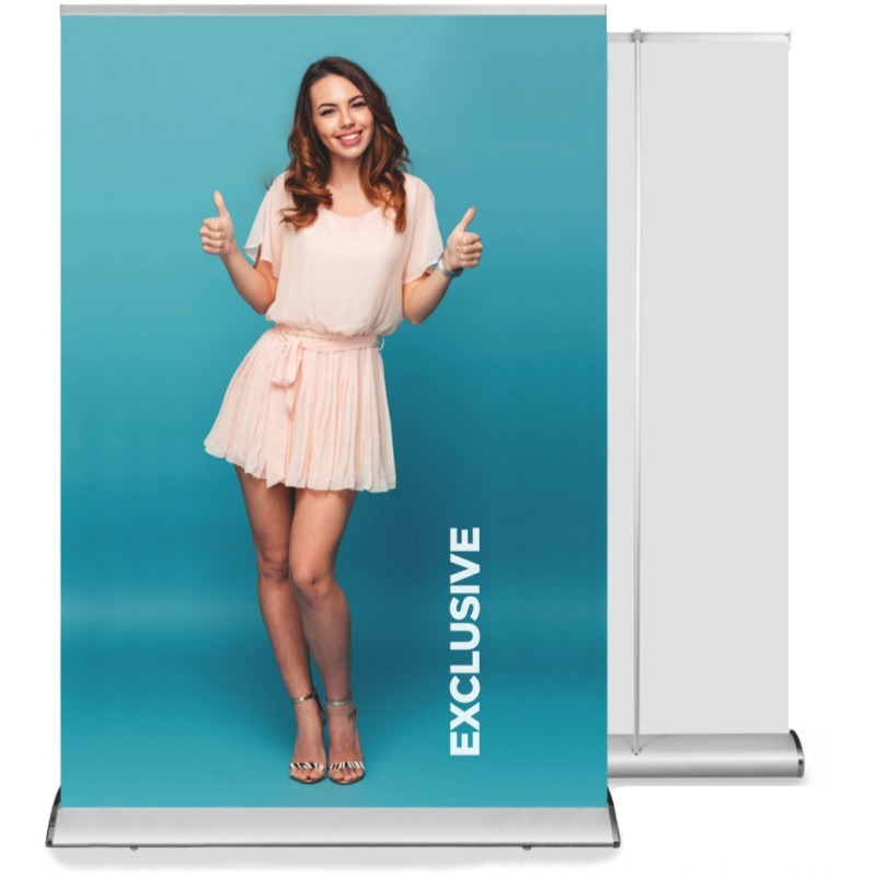 Roll Up Exclusive je jednoznačným lídrem v kategorii prémiových Roll Up systémů a svou kvalitu prokázal na mnoha trzích. Tento model zaujme výjimečně stylovým designem, často označovaným jako „slza“ nebo „kapka“. Vyznačuje se vysokou odolností a stabilitou a zajišťuje elegantní prezentaci jakéhokoli tiskového motivu. Ideální volba pro zákazníky s nejvyššími nároky.