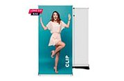 Roll Up Clip, ocenený za užívateľsky prívetivý systém výmeny grafiky a teleskopickú tyč. Vďaka hornej lište "Express Clip" a odklápaciemu mechanizmu vo vnútri kazety je výmena tlače otázkou niekoľkých sekúnd. Hliníková kazeta so širokým zadným panelom zaisťuje maximálnu stabilitu systému. Polstrovaná taška s pozdĺžnym zipsom uľahčuje manipuláciu a chráni kazetu počas prepravy.