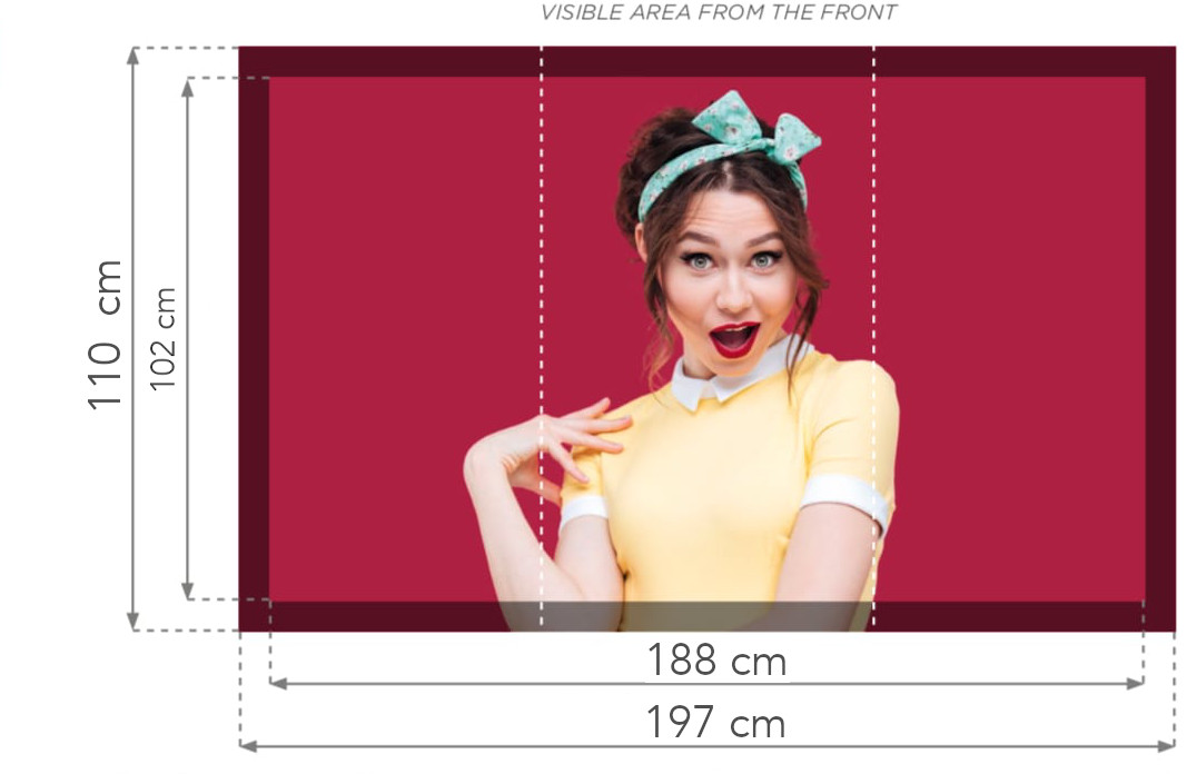 Grafika je upevnená silikónovou páskou prišitou do tlače. Časť tlačového podkladu bude spolu s páskou zasadená do profilu konštrukcie. Upozorňujeme, že dôležité grafické prvky by nemali byť umiestnené v tejto časti. Šírka tohto priestoru by mala byť 0,7 až 1,6 cm (na každej strane), v závislosti od pružnosti látky. Čím menej elastická látka je, tým širší by tento okraj mal byť. Odporúčaným materiálom pre tento systém je elastická tkanina s hmotnosťou maximálne 250 g/m².