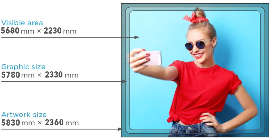 Pro vytvoření oboustranné grafiky je třeba sešít dva tisky podle hranice „rozměru grafiky“, přičemž dolní okraj se neprošívá. Do spodní části se následně všije suchý zip nebo zipová páska. Hotová grafika se na konstrukci natahuje podobně jako ponožka. Doporučený materiál pro tento systém je pružná textilie s gramáží ne vyšší než 250 g/m².